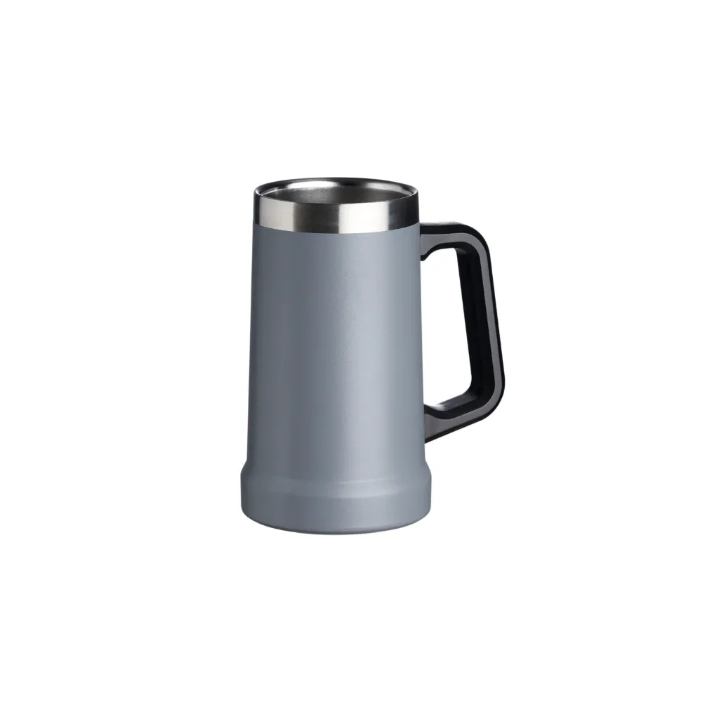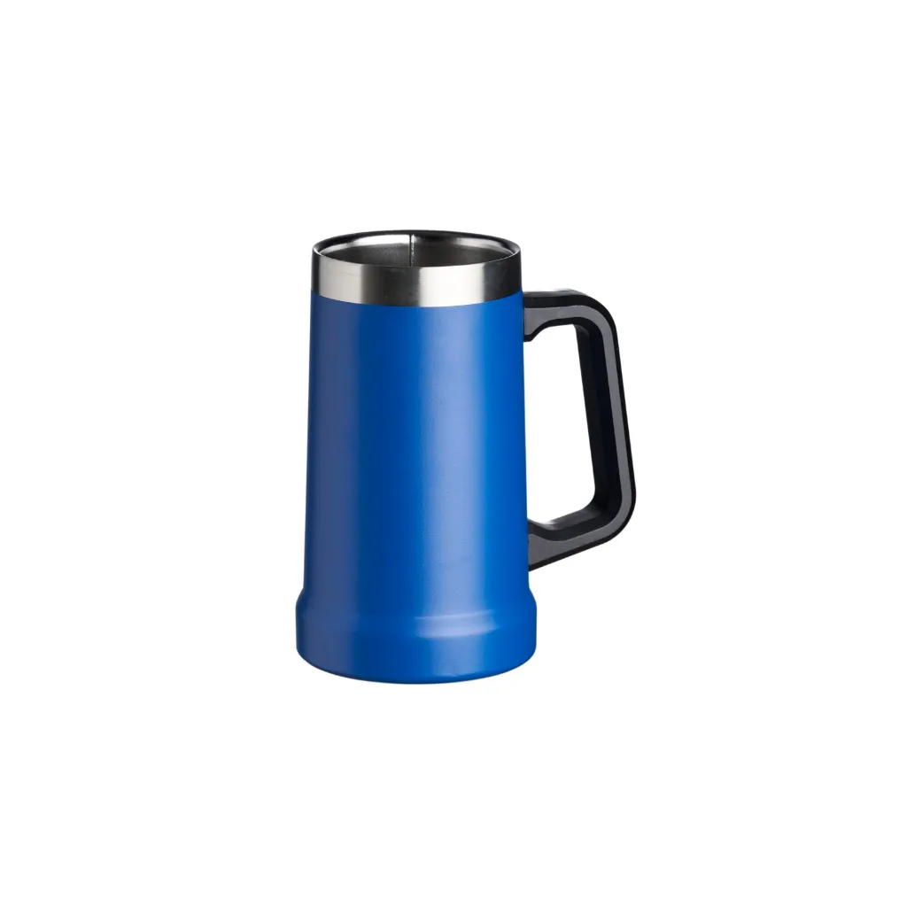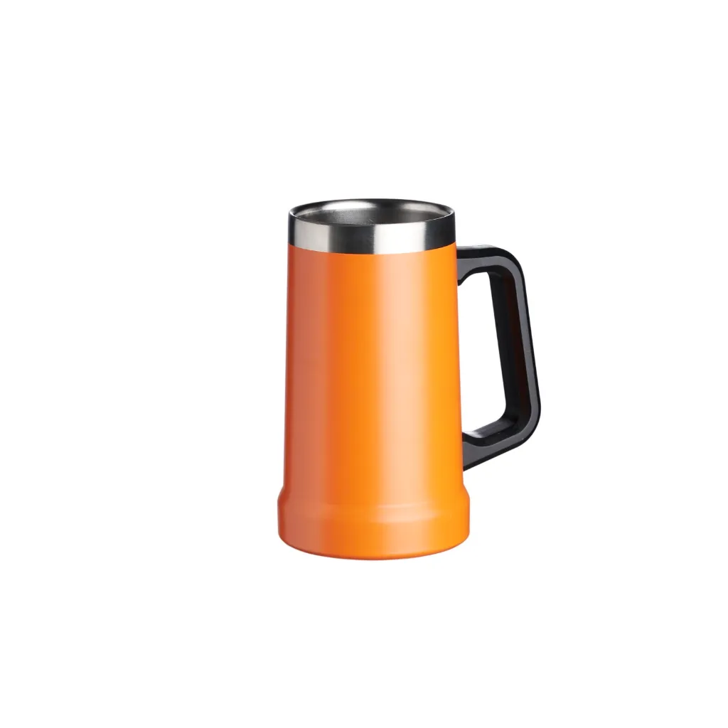 Descrição: Caneca térmica de inox com pegador plástico, capacidade de 700ml.