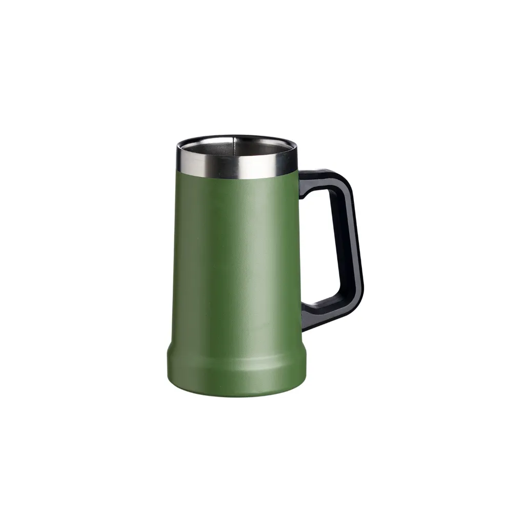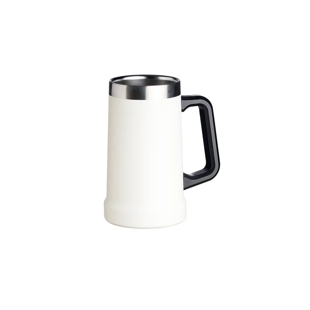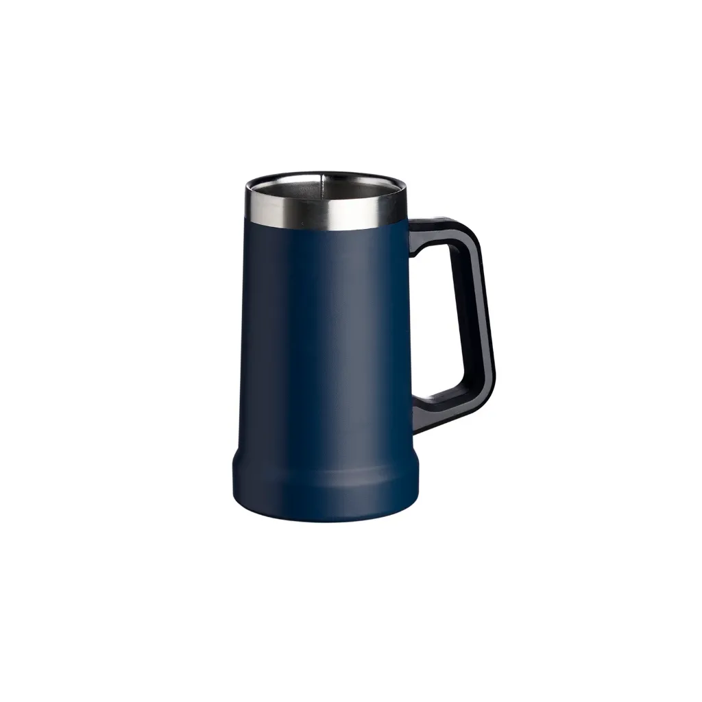 Descrição: Caneca térmica de inox com pegador plástico, capacidade de 700ml.